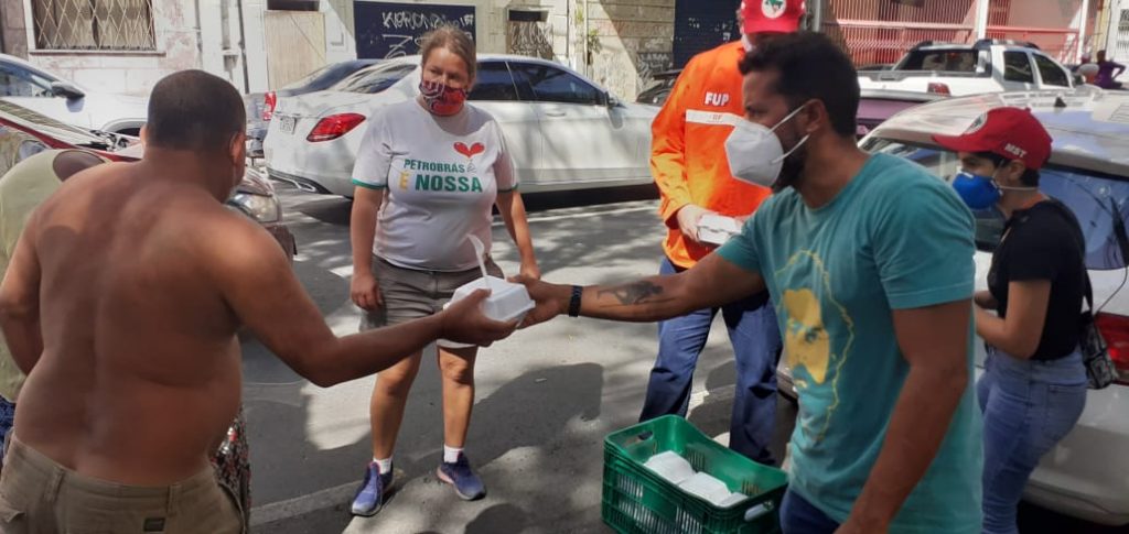 Após a conversa com os trabalhadores, os petroleiros visitaram as iniciativas e projetos dos movimentos sociais que têm distribuído alimento durante o período de calamidade pública decorrente da pandemia do Covid-19. Foram realizadas visitas à ocupação da Cozinha Solidária do Movimento dos Trabalhadores Sem-Teto (MTST), localizado na Vila Santa Luzia, no bairro da Torre (Zona Oeste do Recife), que desde o dia 17 de maio tem distribuído alimento para a população em estado de vulnerabilidade social e que tem sofrido com o agravamento da fome. A iniciativa do movimento tem sido apoiada pelo Sindipetro PEPB e pela FUP desde os primeiros dias da ocupação, através do subsídio de botijões de gás de cozinha, o que possibilitou a distribuição de mais de 4 mil refeições.