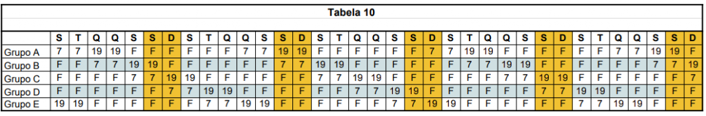 Na última segunda-feira (14), chegaram ao fim as assembleias que votaram as tabelas de turno junto aos petroleiros e petroleiras do Terminal Aquaviário de Suape (TA Suape). Ao longo de seis assembleias, a categoria escolheu as tabelas de número 9 (Figura 1) e número 10 (Figura 2), para a jornada de 8h e 12h, respectivamente. Ao final do processo, 96% dos trabalhadores e trabalhadoras optaram pela tabela de número 10 (que já é aplicada na unidade).